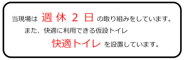 ※ 工事車両の出入りの際には、誘導員を配置して交通災害のない様に努めます。