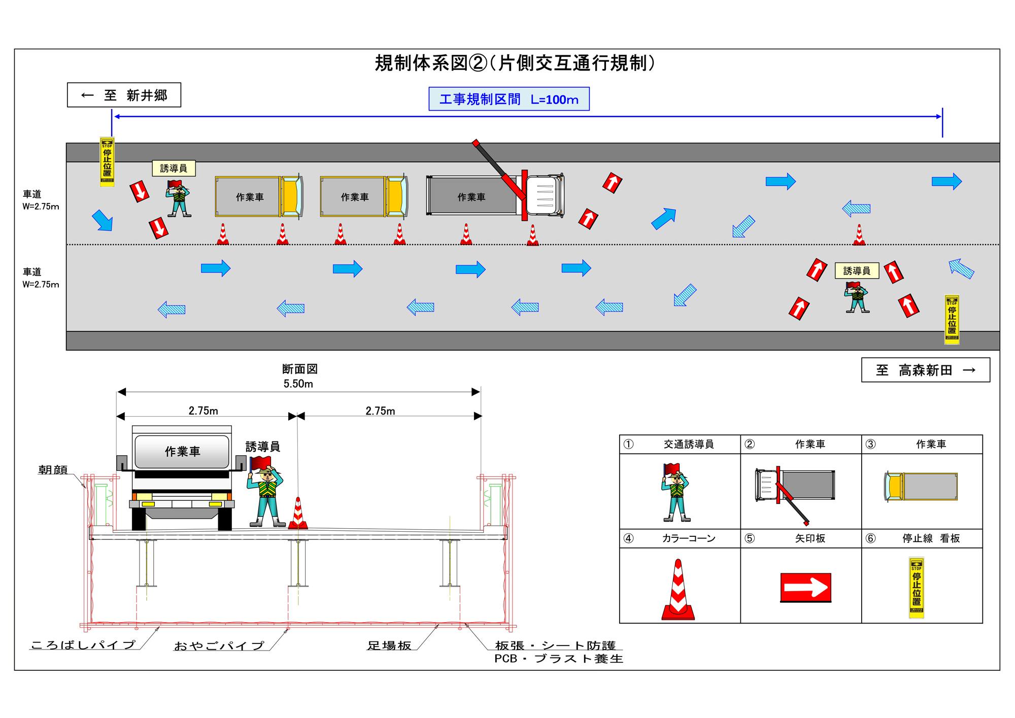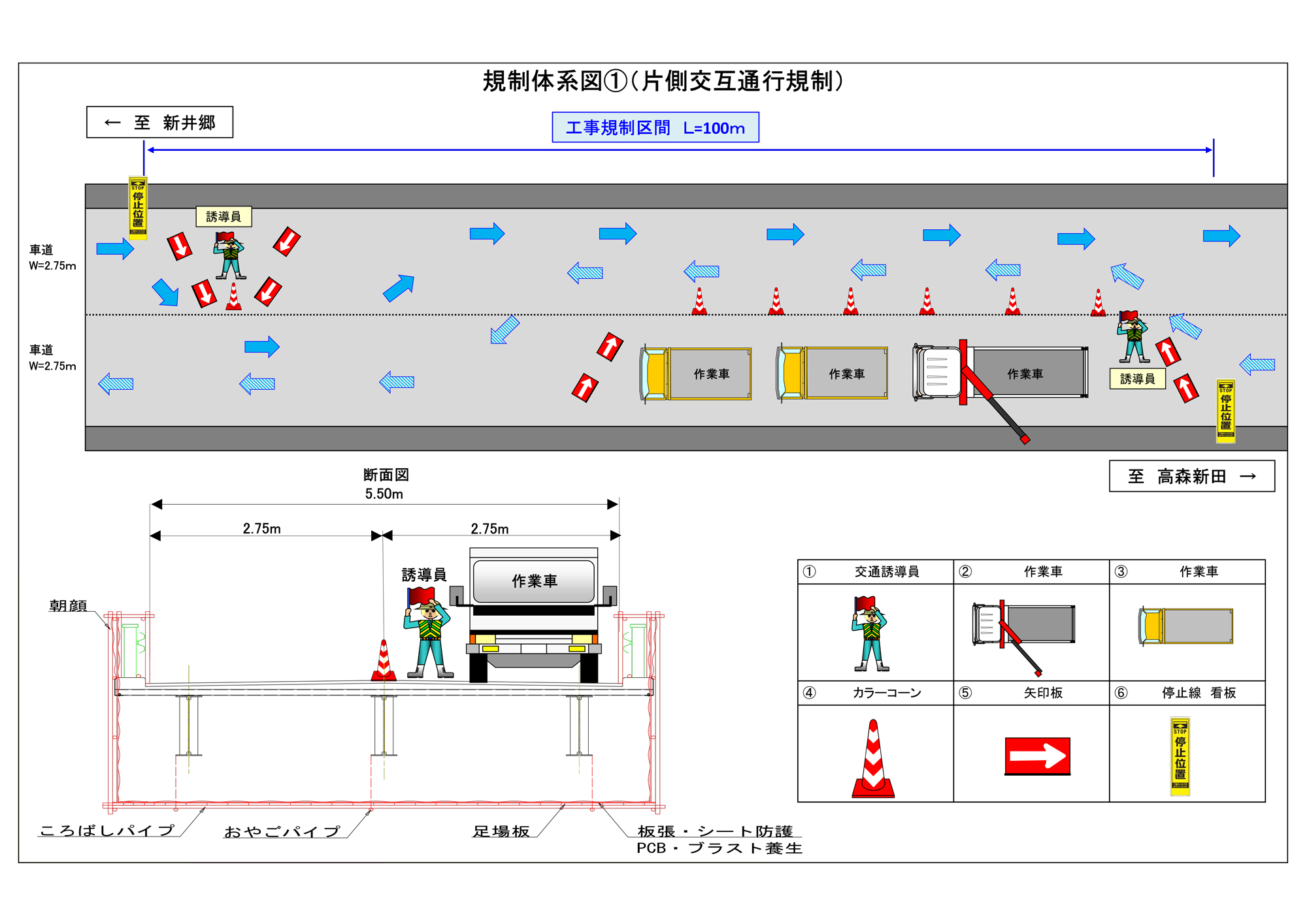 工事期間中は安全を考慮し通行止め及び片側交互通行規制を行います。