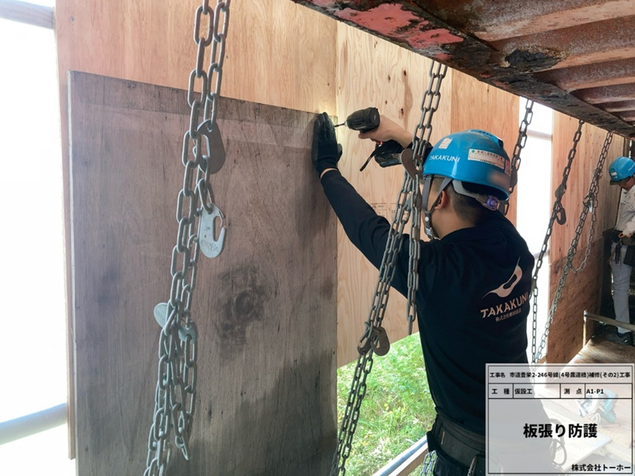 橋梁塗装工、伸縮継手工、舗装工、足場工